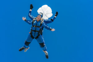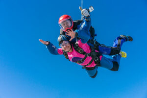 • You need to be at least 16 years old to do a tandem skydive, if you are aged between 16 and 18 you will need a parent or legal guardian to sign to give their consent. There is no upper age limit to skydiving, so as long as you’re reasonably fit and healthy then there should be no problem with you tandem skydiving with us!